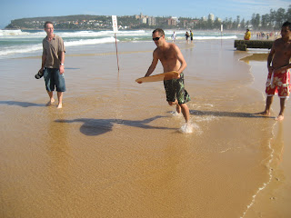 Here's a few pictures taken on Manly beach. I recently bought a skimboard (I have only used it a couple of times. I bought it to add to my arsenal of beach equipment but as far as I'm concerned it has got 'cruciate ligament damage' written all over it – I've already taken a layer of skin off my back). Will is rather good at it, as you can see here and here. Unfortunately I wasn't filming when Kirby stacked it (that would have got me 250 quid on 'You've Been Framed' for sure) but I did take some stills (and check out Will's expression in each photo).